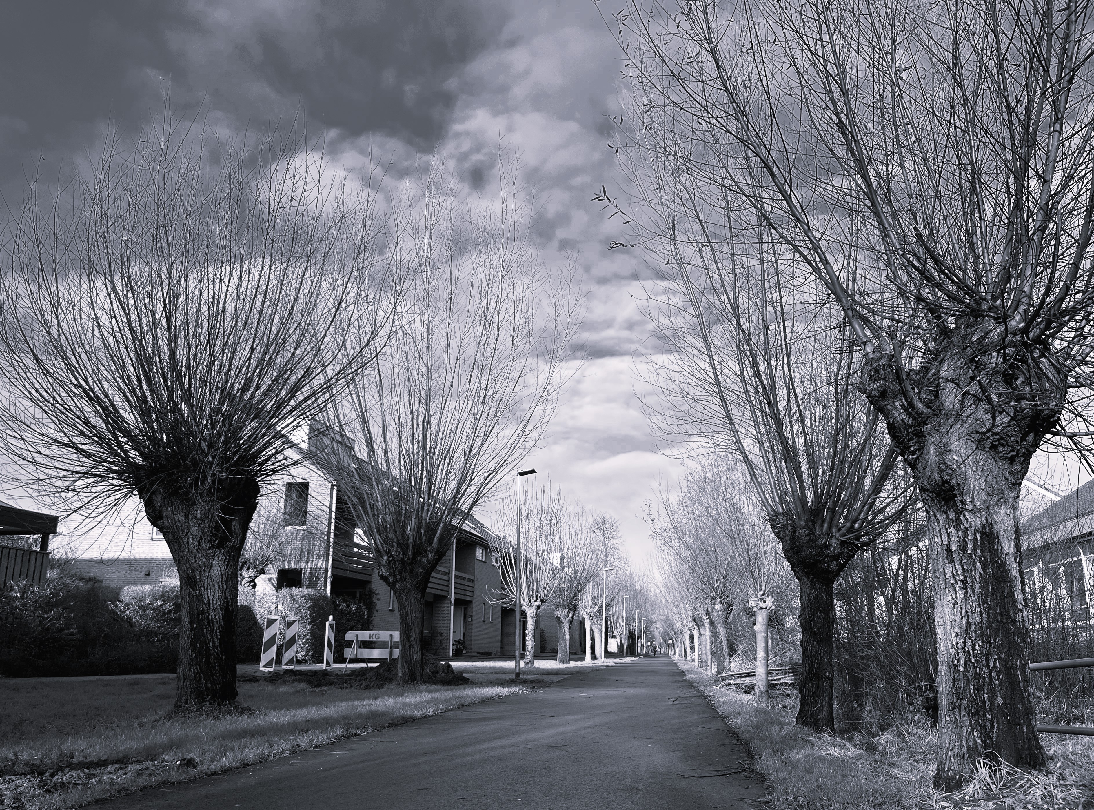 Toen ik zestien was, had ik een ongeluk op zo’n fietspad (niet exact op de plek van de foto, maar het scheelt niet veel). Ik had een vriend bezocht en een paar biertjes gedronken. Op de fiets naar huis, rond middernacht, zwiepte ik vrolijk heen en weer met mijn benen – of dat vermoed ik, er kwam iets tussen mijn spaken, waarschijnlijk mijn eigen voet. Languit op het asfalt voelde ik meteen dat het mis was. Bloed en stukken kies in m’n mond. In het maanlicht zocht ik nog een poos naar mijn bril en sleepte toen kermend mijn verbogen fiets mee naar huis.