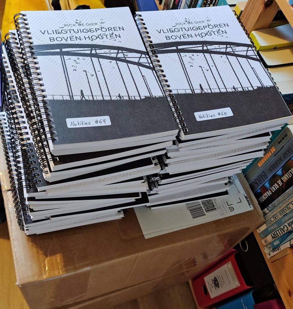 Zojuist een paar honderd boekjes met de hand genummerd. Vliegtuigsporen boven Houten (notities) verschijnt als bijlage bij het gelijknamige album en bevat verhalen, essays, songteksten en foto’s. De vormgeving verwijst naar de vele notitieboekjes die ik volschreef in de ontwikkelingsfase van dit project.
